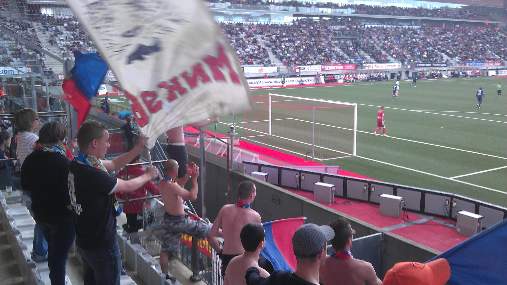 Premiere mi-temps on chante bien j'dirait une 15aine de motivés. Deuxieme mi-temps on marque c'est cool mais les chants restent constents on s'fais égalisé sur le moment c'est chiant mais a la fin c'est déjà bien un point ici :) .