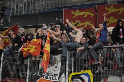 Arrivé sur Rennes à 15H30, le temps de faire rentrer le bâchage et les gens le match va bientôt commencer. Début de match, de grosses poussées résonneront dans ce stade amorphe, des drapeaux normands offerts par le MNK96 seront tendus dans tout le parcage pour un rendu vraiment sympa ! But dès la 4ème minute, ce qui fera monter le mercure dans le parcage jusqu'à la 45eme pour un score de 1-1.