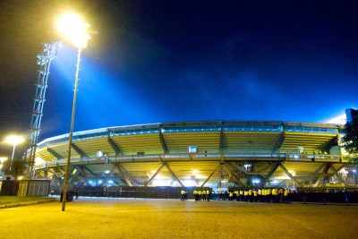 C'est un stade sans étage, oval, avec de l'espace pour une piste d'athlétisme qui n'existe pas. Au milieu de la tribune, un petit stand vend des boissons semi-fraîche et des graines de tournesol. Un groupe de supporters arménien d'environ 80 unité a pris place entribune, alors qu'en face en autre groupe d'une centaine de supporters s'est posé en tribune Nord. En parcage une trentaine de roumains vêtu de noir, trois bandes aux pieds sont en train de bâcher des drapeaux roumains, ou peut être tchadiens d'ailleurs, on ne sait jamais. En tribune présidentielle une vingtaine de roumains en maillot jaunes commence à faire leur vocalises. Etrange que ces derniers ne sont pas allé en parcage grossir les maigre rangs des visiteurs. De même pour les arméniens qui se contenteront donc de deux petits groupes au lieux d'un bloc plus puissant.