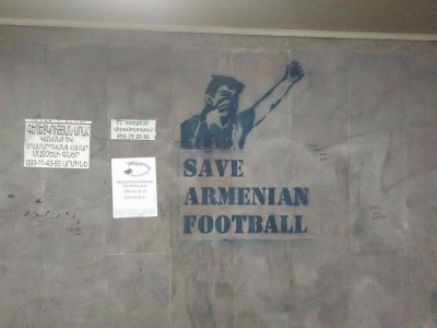 J'arrive au stade une heure avant le coup d'envoi, la nuit vient de tombé sur la banlieue Sud de Yerevan. J'approche du stade, me faufilant entre des sombres reliques architecturale du passé soviétique. Ca sent la viande de mouton et l'oignon enroulé dans du lavash, quelques pauvres mères assises sur des tabourets proposent des paquet de mouchoirs et drapeaux nationaux en polyester. Le quartier sent un peu la défaite, mais une défaite sympathique et accueillante. Une défaite Arménienne.