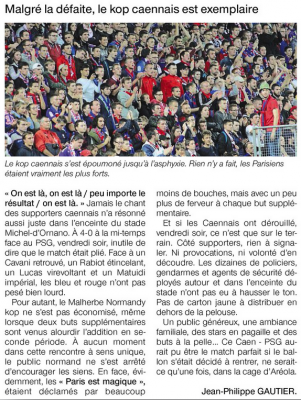 Comme on le disait lundi dernier, Paris est un adversaire comme les autres. On est Caen et basta ! Big up à tous. Mention spéciale à kesal et simon aux tambours...