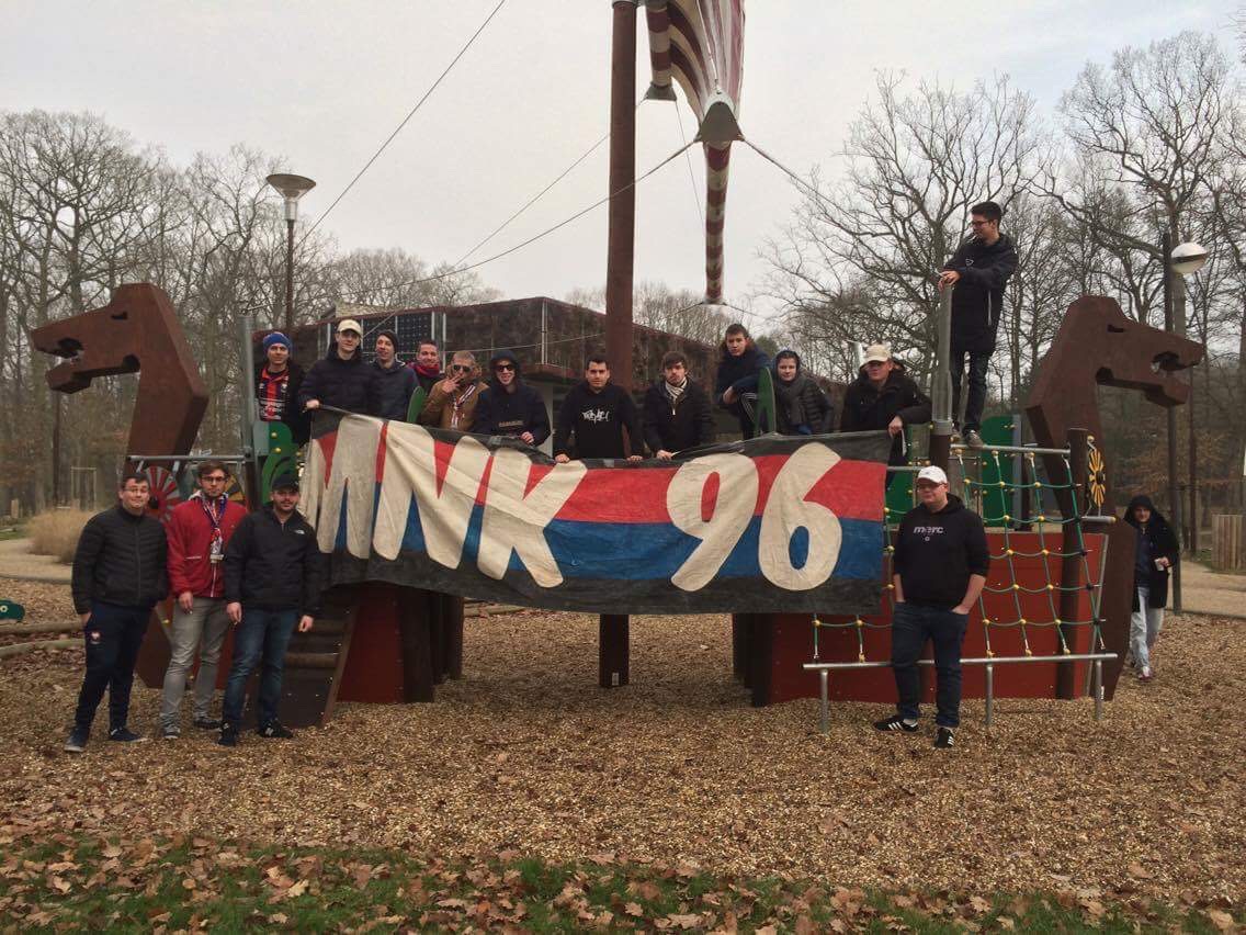 19h c'est l'heure d'aller au match ! Nos copains d'la nationale sont toujours la et on a même droit à un deuxième camion ! Le cortège part au stade en chantant mais faut ralentir "Boris n'arrive pas à suivre" donc c'est lui devant et personne le double ! on arrive au stade on rentre les j9 dans le parcage où quelques voitures sont déjà présente (4 je crois), on paye la place (10 euros) et on bâche.