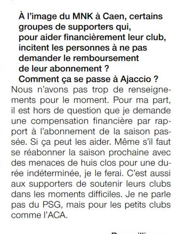 dans le Ouest-France sport du jour, interview de Loïc Durand (alias Perfettu,), supporter de l'AC Ajaccio
