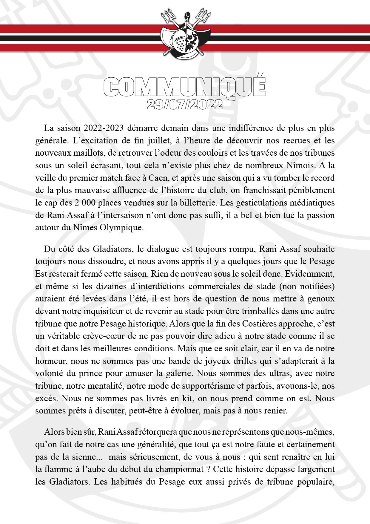De notre côté, nous informons d'ores et déjà le Nîmes Olympique que nous transmettrons, demain soir à 23h58, la liste de nos 96 adhérents et sympathisants inscrits pour ce déplacement, afin de continuer dans l'amateurisme, ce qui semble être leur marque de fabrique.