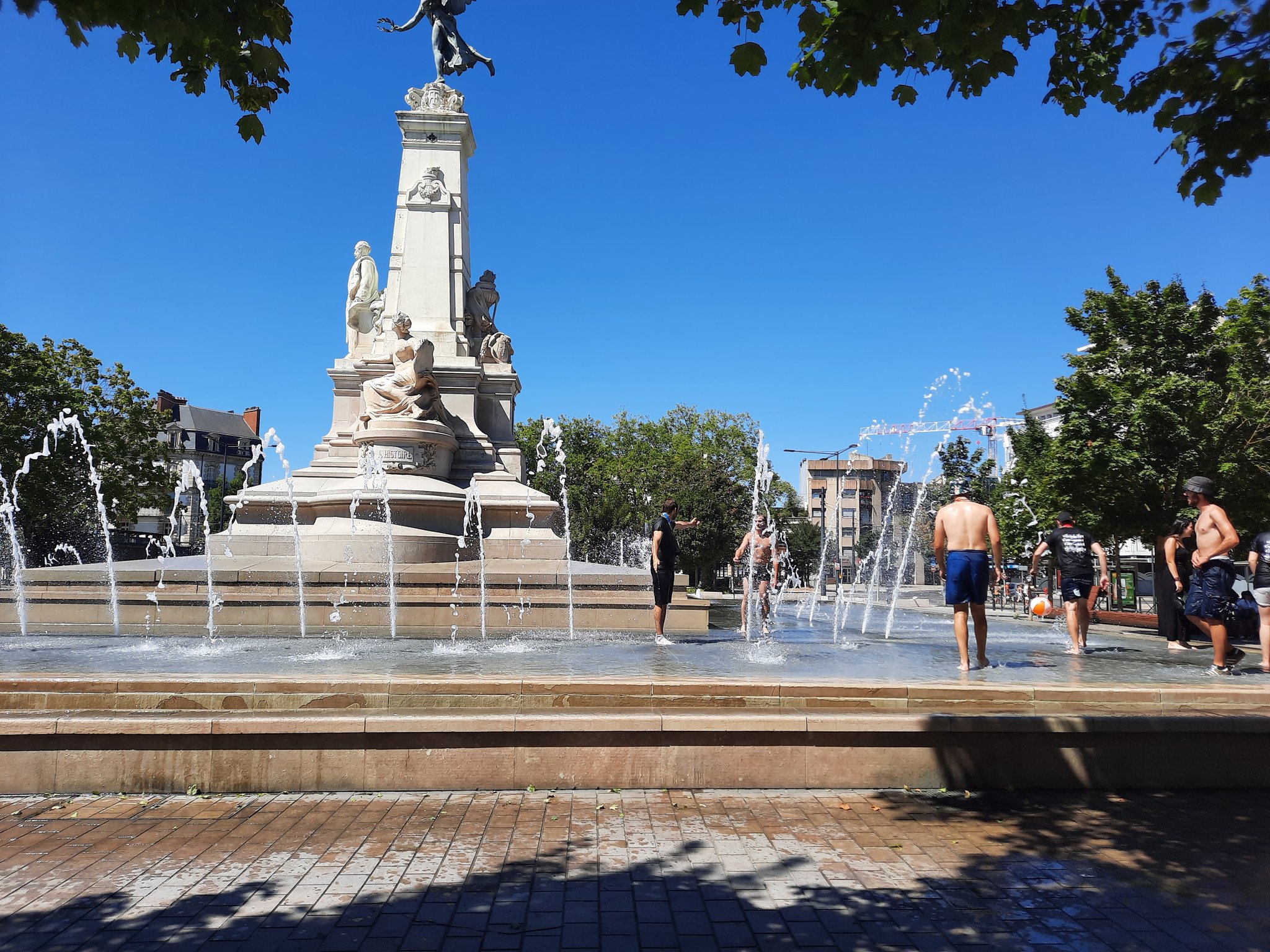 Avant de repartir vers un bar plus proche du stade, une bonne dizaine de Caennais se baignent dans la fontaine du parc, ça saute, ça joue, ça se rafraîchi... C'est très franchement agréable.