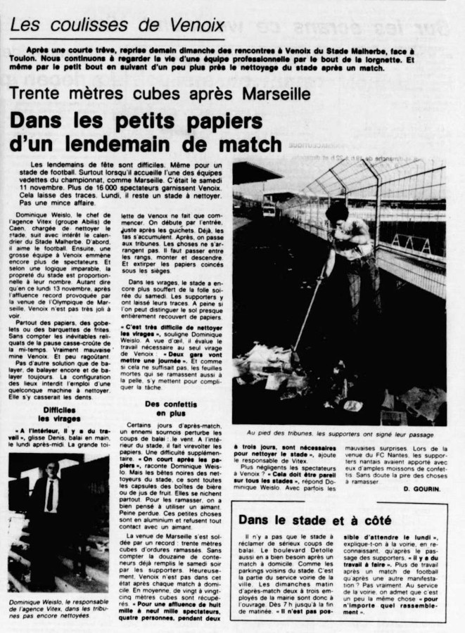 le futur stade d'Ornano l'installation de la tribune supplémentaire de 700 places l'entretien de la pelouse le nettoyage du stade de Venoix après les matchs Yvette à la buvette