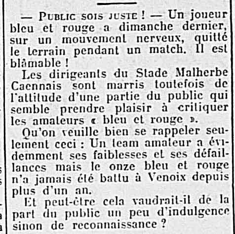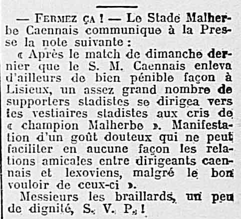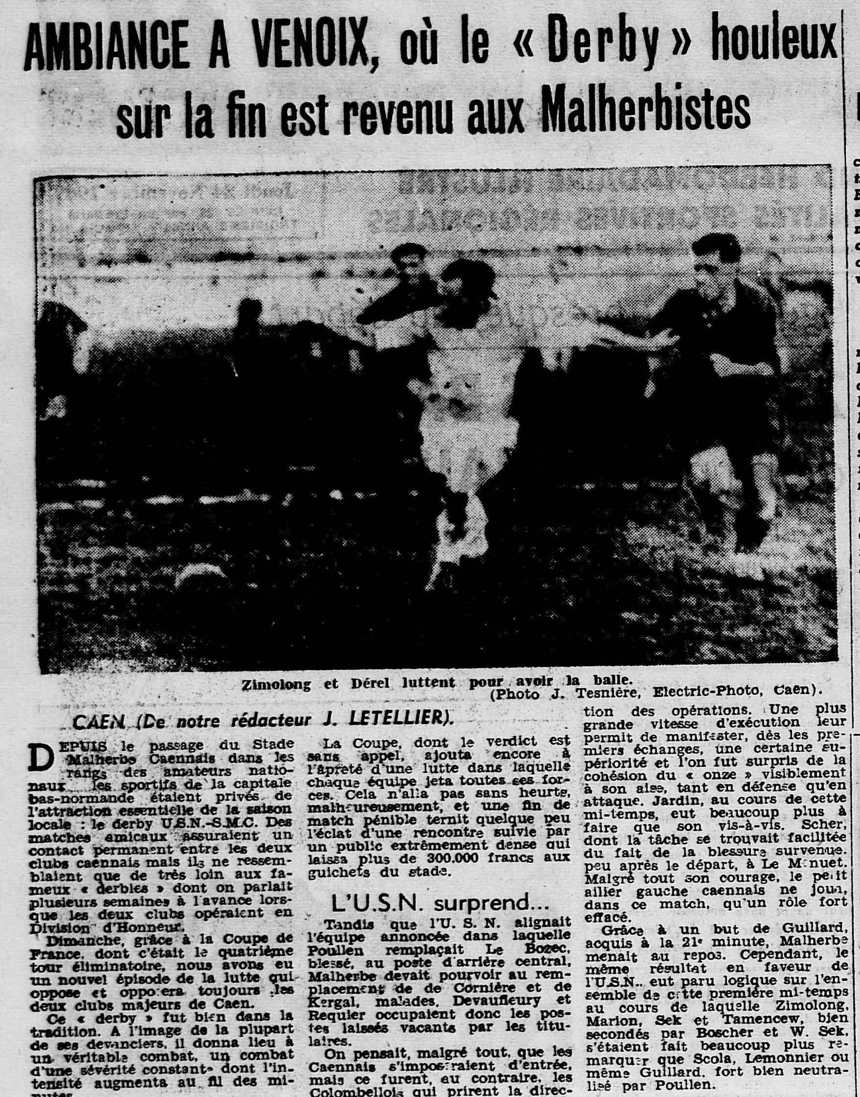 Après entre 1933 et 1938 il y a peut-être eu un match amical entre les deux clubs, mais la période professionnelle d'alors à Malherbe me fait penser que c'est peu probable.. quoique possible, car les deux clubs entretenaient de très bonnes relations (l'USN participant même à une cagnotte pour sauver le professionnalisme à Caen en 1937.)