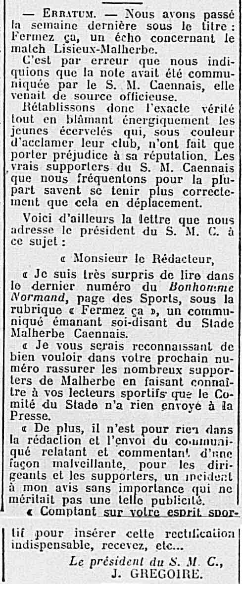 Sans doute saison 1938-1939 quand les deux clubs évoluent dans le même championnat pour la première fois (DH Normandie).18cher a écrit :Question difficile ... ou pas![]()