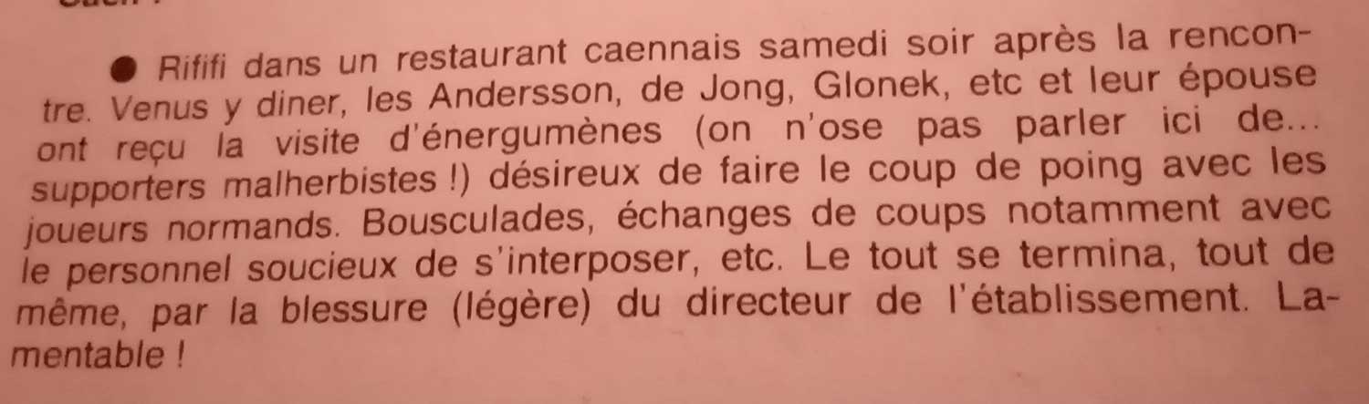 autres temps, autres mœurs, à l'issue du match contre Le Havre du 20 mai 1995