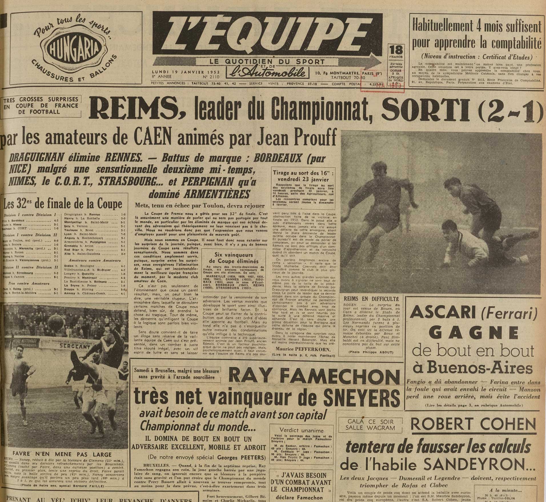 l'exploit de Coupe de France en janvier 1953 dans l'Equipe
