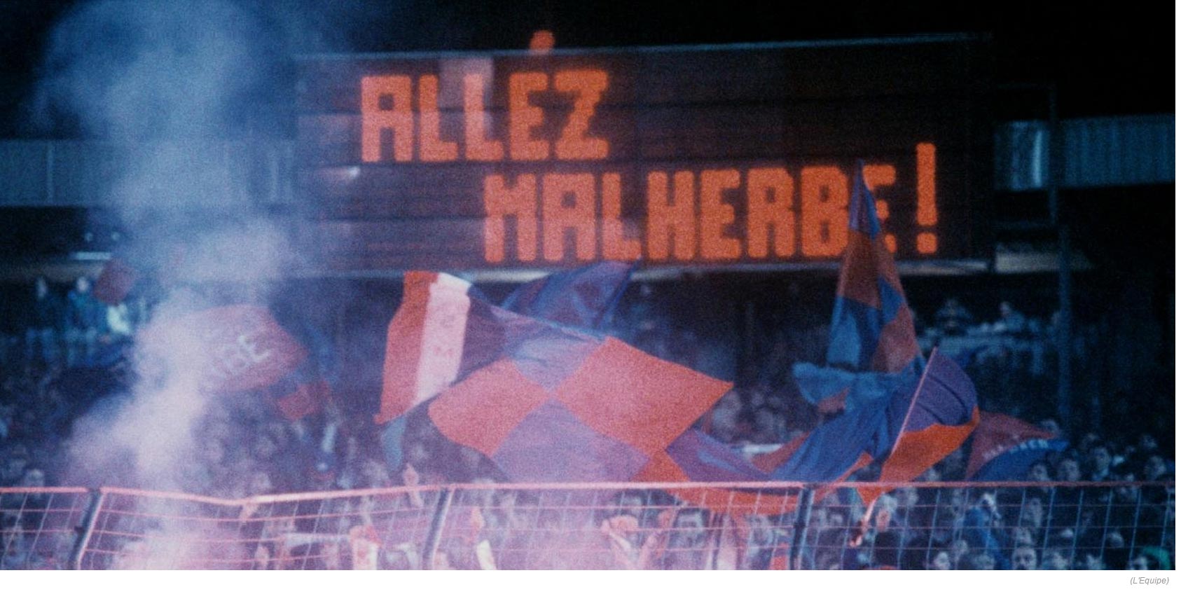 Banderole "Kop côté Venoix" présente depuis au mois 1986 derrière laquelle se regroupent les futurs Vikings