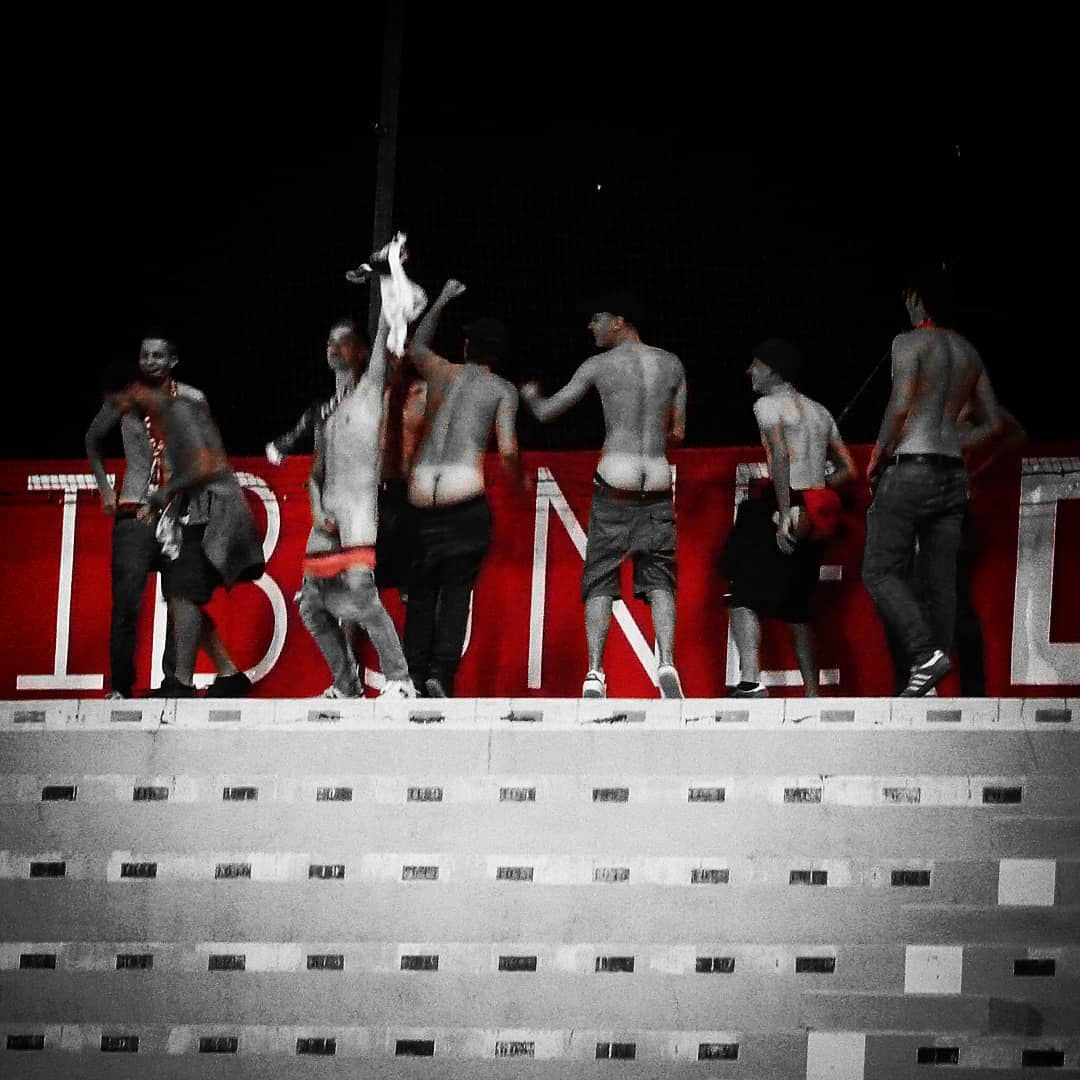 Arrivé sur les coups de 12h30, on décide de se poser dans un bar en centre ville puis un deuxième vers le stade. Ça boit, ça rigole on voit pas le temps passer. On est rejoins par Chatouf Kaeso Moncul et Cindy partis plus tard. Il est déjà l’heure d’aller au stade, arrivé au parcage la fouille est très poussée, Kozielo se fait choper avec une chlorate mais il est finalement relâché. Vingtaine de présent en parcage, un tifo réussi et un bon bloc de jeunes.