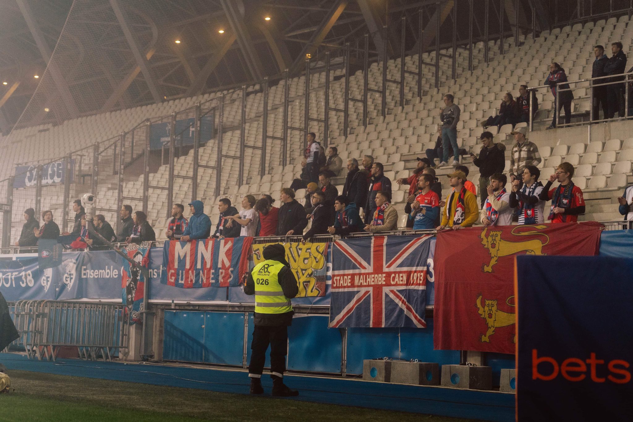 une petite quarantaine de supporters en parcage avec quelques anciens désormais installés dans le coin (papa Ours, JJ, Jay)