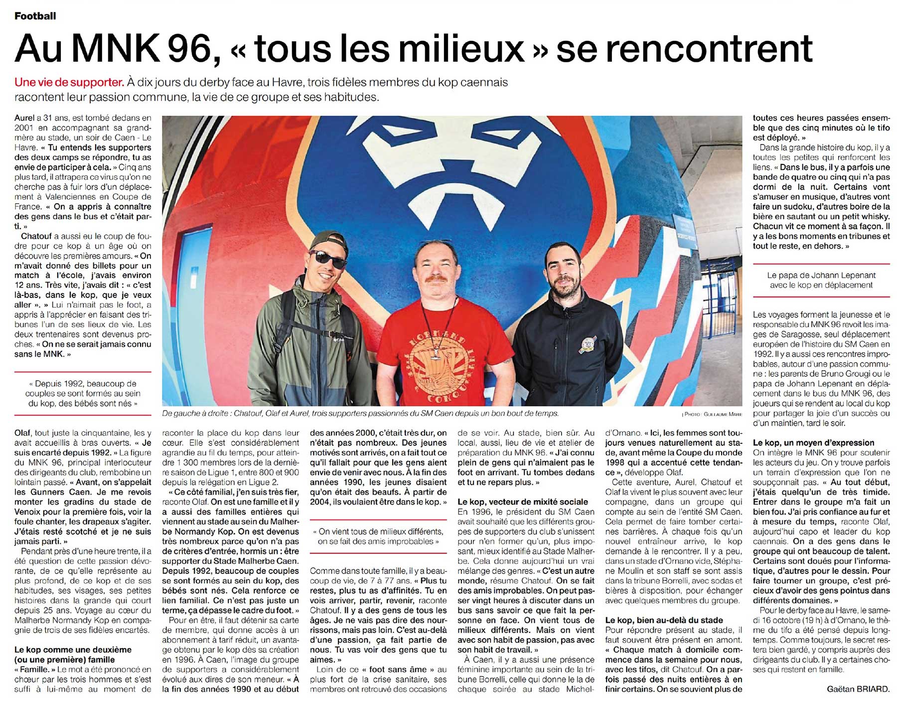 article disponible dans la version papier de mercredi normalementbenoit caen a écrit : ↑02 oct. 2021, 12:38 Les Ultras de l’Ouest. SM Caen : MNK 96, une famille où « tous les milieux » se rencontrent