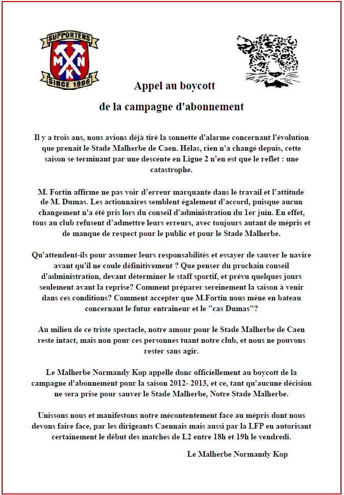Officiel : Appel au Boycott de la campagne d'abonnement