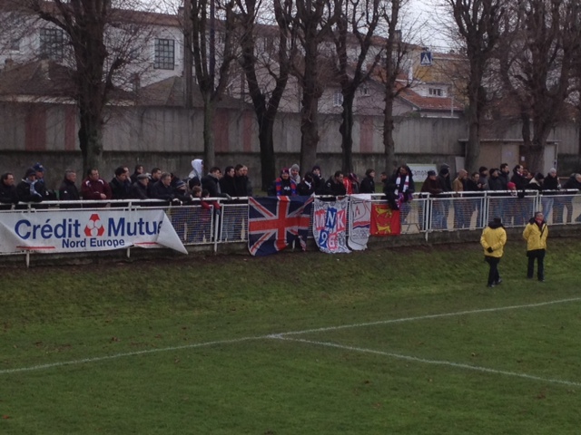 On bâche deux-trois étendards dans la partie réservé aux caennais où nous retrouverons Aurélien, sa poto et deux-trois jeunes supporters de Caen.. Le match commence: