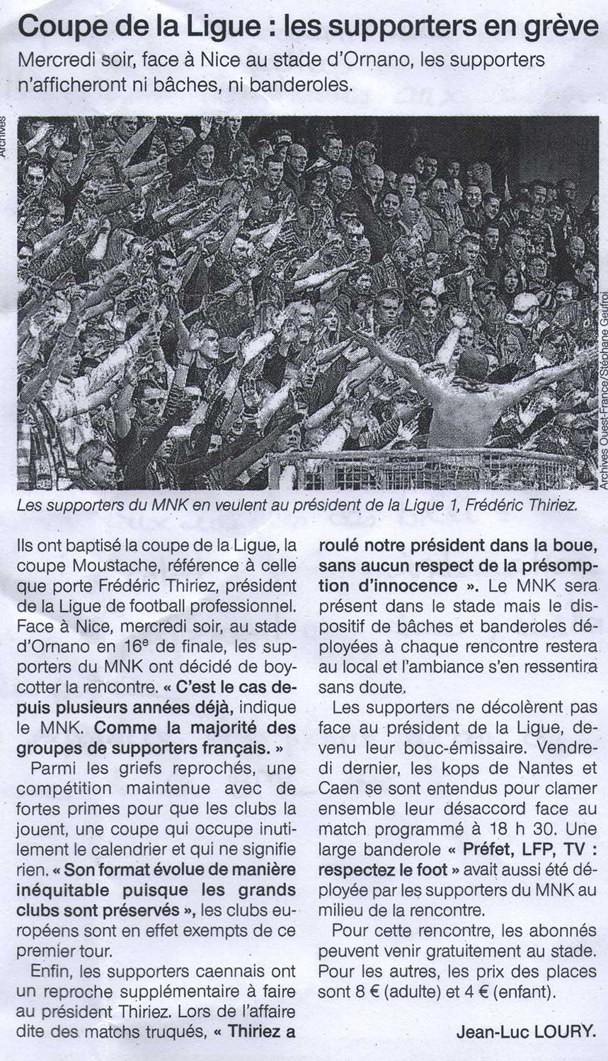 Communiqué concernant le match de coupe de la Ligue, Caen-Nice.