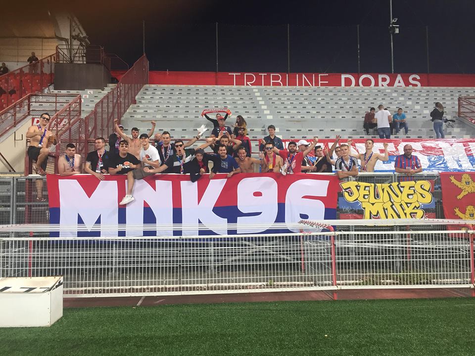Arrivé sur les coups de 12h30, on décide de se poser dans un bar en centre ville puis un deuxième vers le stade. Ça boit, ça rigole on voit pas le temps passer. On est rejoins par Chatouf Kaeso Moncul et Cindy partis plus tard. Il est déjà l’heure d’aller au stade, arrivé au parcage la fouille est très poussée, Kozielo se fait choper avec une chlorate mais il est finalement relâché. Vingtaine de présent en parcage, un tifo réussi et un bon bloc de jeunes.