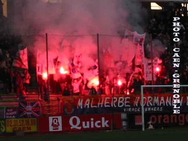 Quand je disais ''6 mois avant que le Kop occupe réellement les deux carrés centraux'', je parlais du Caen-LeHavre en Coupe en janvier 2004, avec tout le monde debout sur ces deux carrés : (on sentait que c'était possible, qu'il y avait un engouement, que depuis quelques temps le Kop avait vraiment imprimé sa marque sur la tribune, donc on a tenté le coup de Poker de mettre des tracts et affiches partout sur les deux blocs, disant que les deux carrés étaient une ''Zone Debout'', et ça a fonctionné, c'est ça que les gens voulait, fallait juste enclencher le truc)
