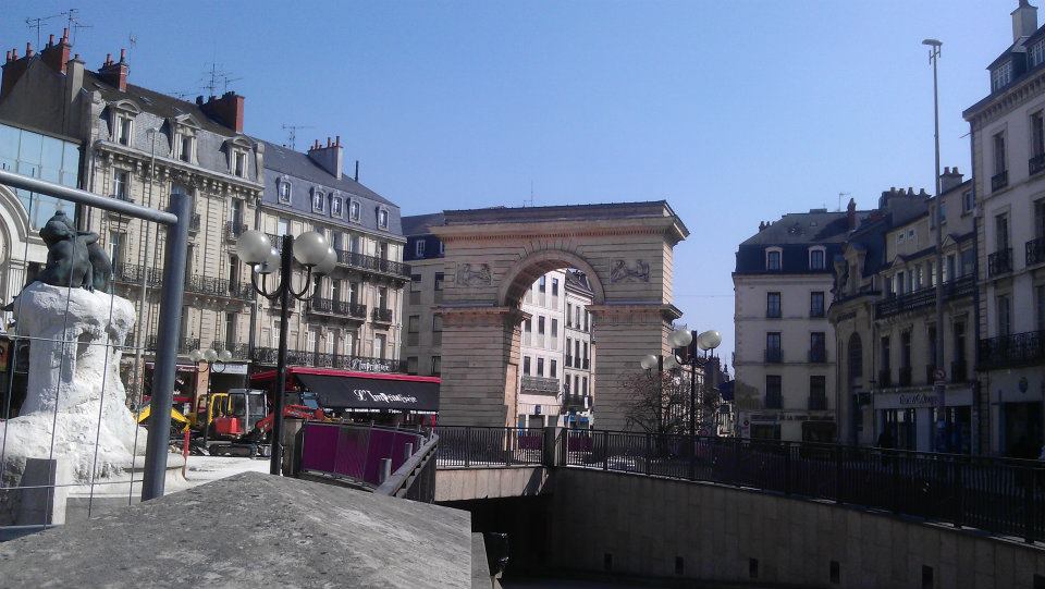 la première chose qu'on voit de Dijon quand on quitte l'autoroute, c'est un joli pont ferroviaire