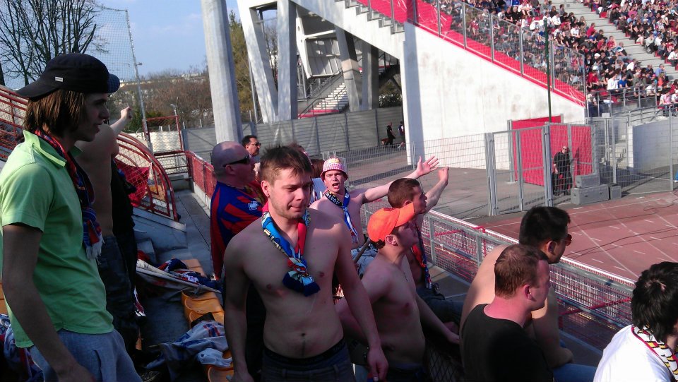 Une fois le stade trouvé, on parcourt un dédale pour arriver dans un bout de tribune où l'on retrouve d'autres caennais d'ici et d'ailleurs