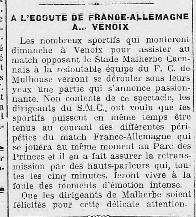 la question du professionnalisme, journal de Caen 7 novembre 1933