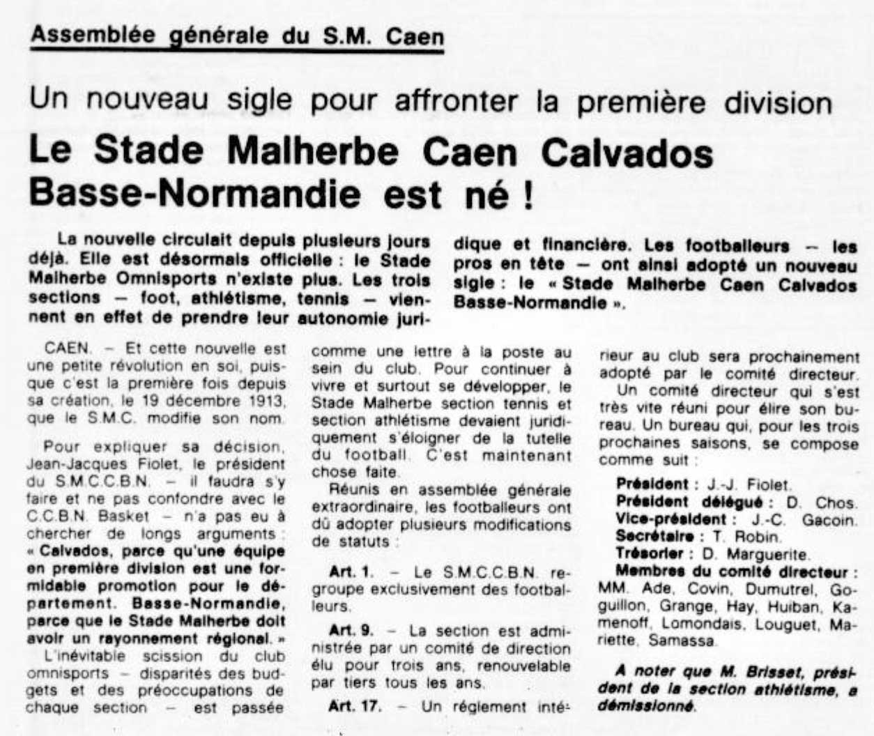 oui, la section athlétisme a survécu une dizaine d'années sous le nom de stade Malherbe athlétic club puis fusionne avec le club sportif des municipaux pour former le Caen Athlétic Club qui existe encore.