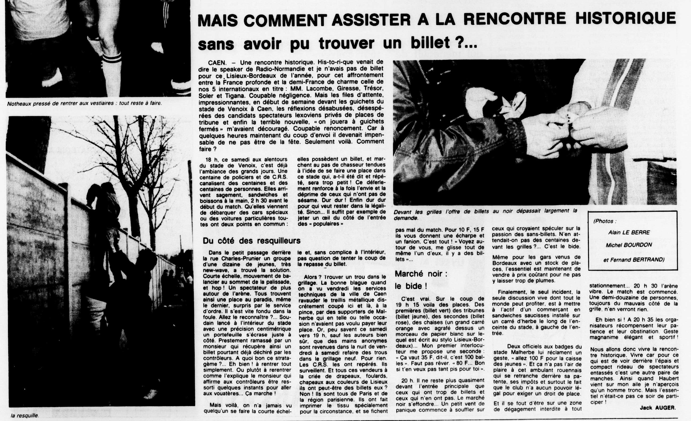 match de Coupe de France entre Lisieux et Bordeaux à Venoix en mars 1982 (qui établit le record d'affluence avec 13 284 entrées payantes)