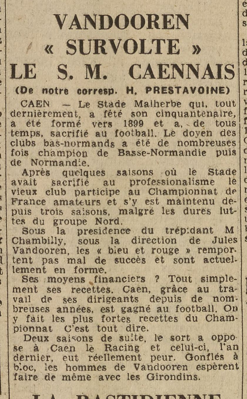 c'est du Prestavoine tout craché, c'est en partie grâce/à cause de lui - en étant un ancien du Club sportif caennais - que cette date a longtemps été usité (25 ans en 1925 et cinquantenaire en 1950)