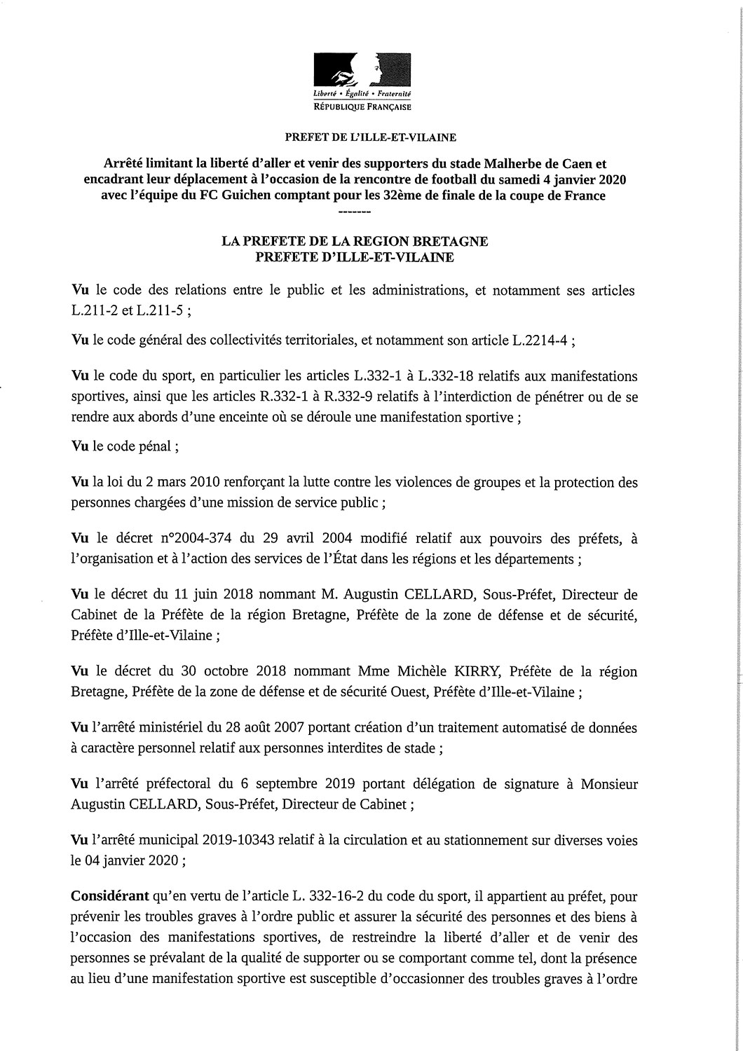 Ce match est annoncé depuis 1 mois et on publie un arrêté quelques jours avant