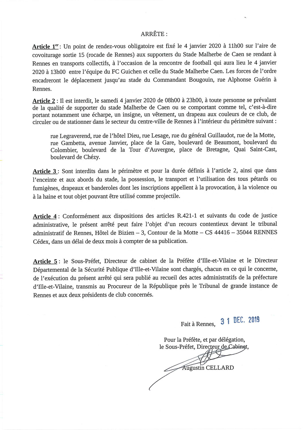 l'interdiction de déplacement à Guichen