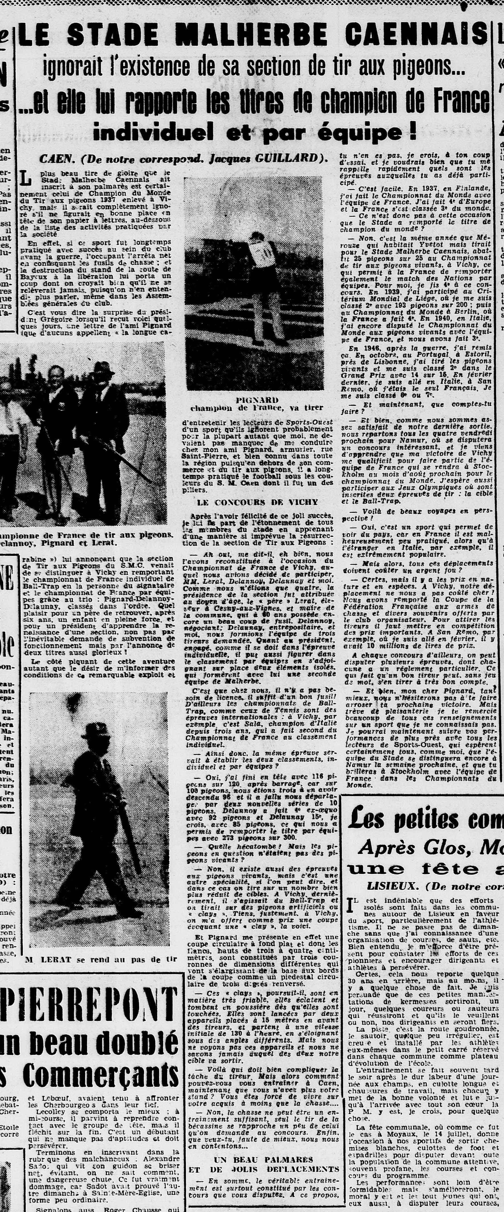 Sport Ouest 24 juillet 1947, la section secrète de Malherbe