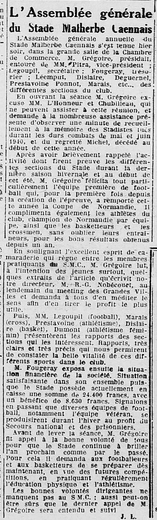 l'AG du club en 1942