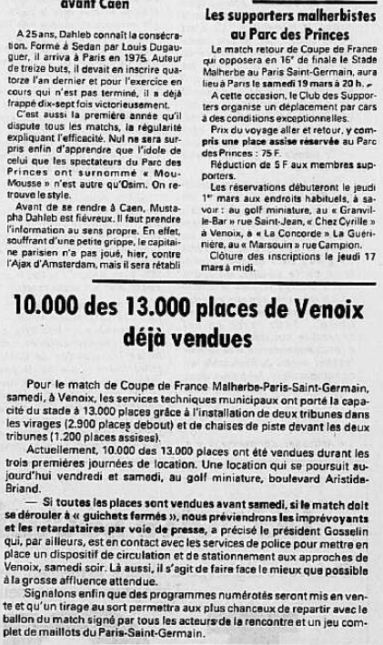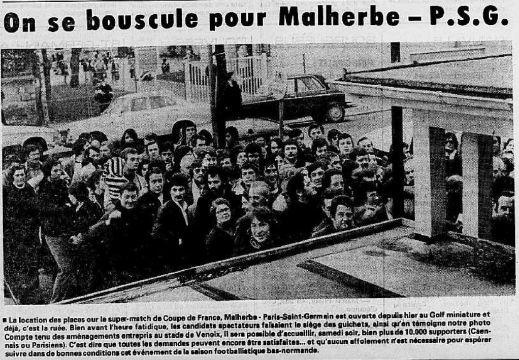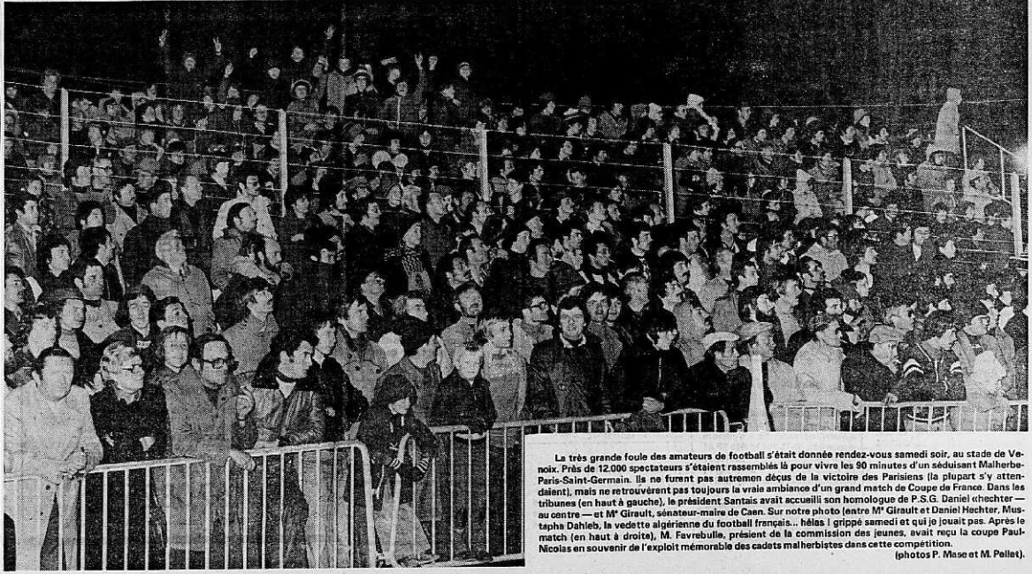 Match de Coupe de France Caen - PSG le 12 mars 1977, 11 583 entrées payantes au final