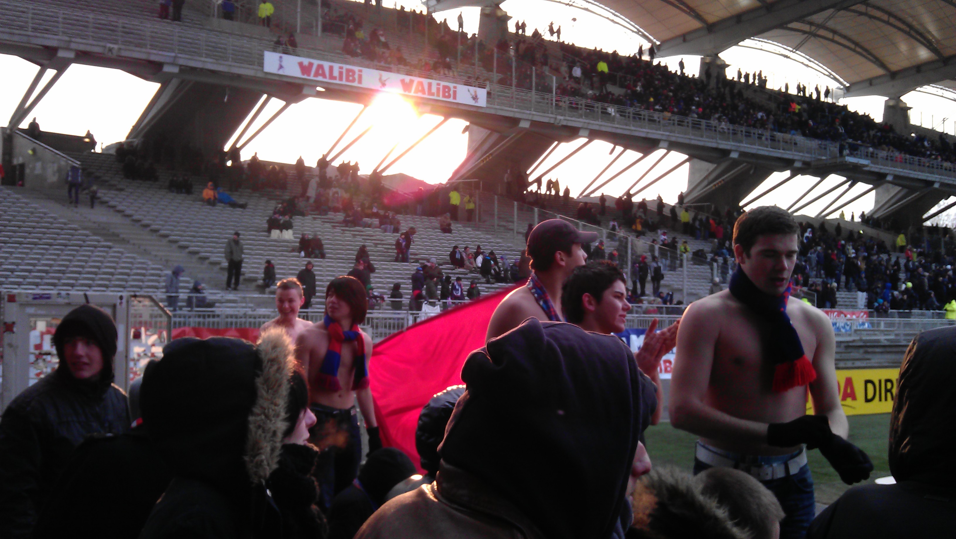 A la mi-temps on se restaure a la cafette tandis que les supporters decide de changer d'endroit a cause du froid mais au final on reviendra en bas