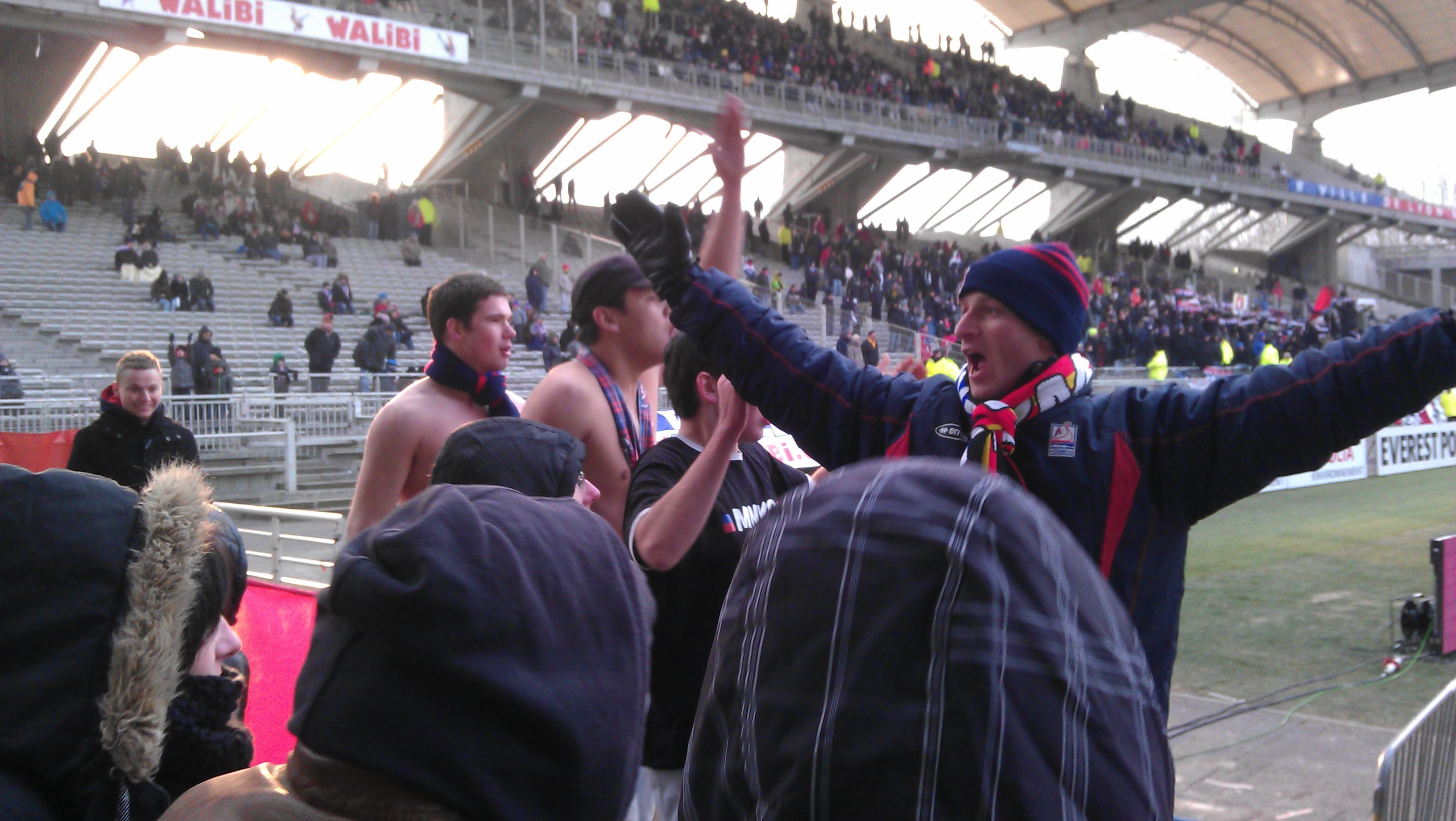 En deuxieme mi-temps les chants sont de plus en plus fort grace a deux trois speeker improviser qui d'ailleurs se mettrons torse nu ( par -5° ) Ils sont fou ces normands.