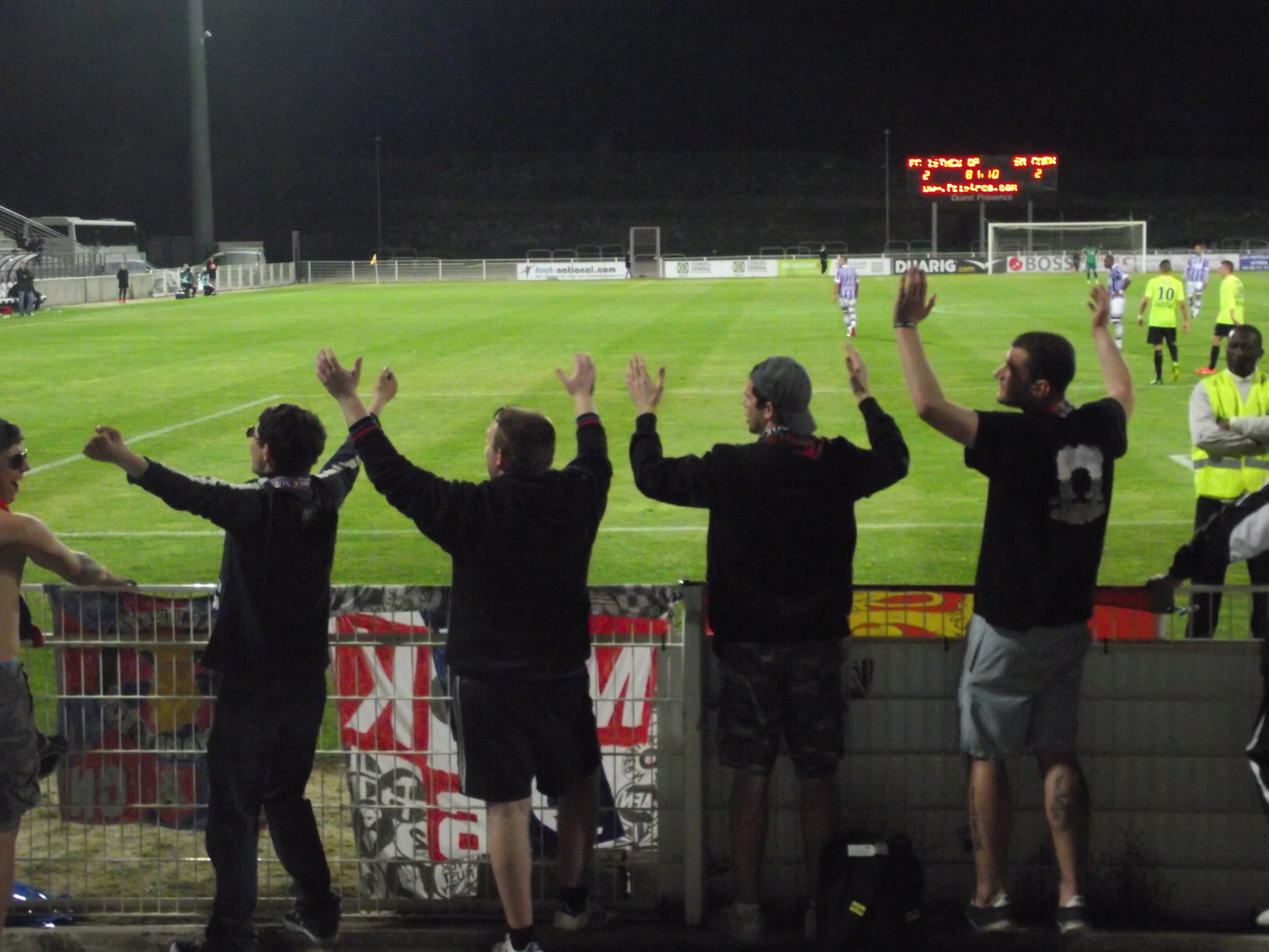 On rentre en parcage on bache on chante et on voit deja que ce stade doit sonné très souvent creu! Le match commence on est une petite quinzaine en parcage une dizaine à chanter et on recoit des messages comme quoi on entend que nous! Logique on est les seuls à gueuler! On est envahit par les moustiques qui se feront grave plaisir en nous défonçant tout le corps a coup de piqure! Sur le terrain ca joue pas top on gagne on perd on fait la fete! On gagne finalement le match même si c'etait pas bandant on est content on a 6pts de plus dans la musette!