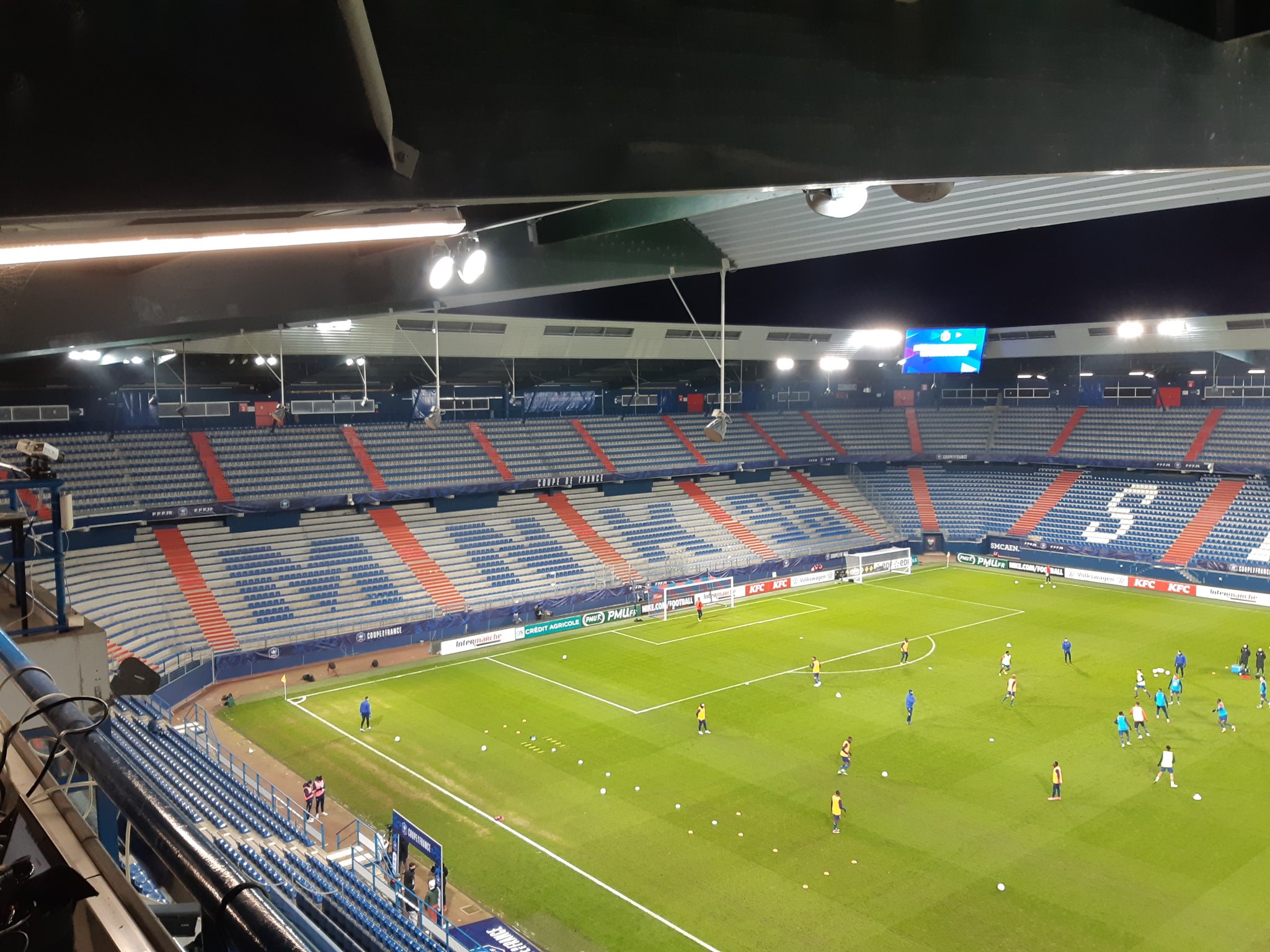 Après la réalisation du M en à peine 15 minutes, l'équipe part sous la pelouse pour observer le chef d'oeuvre. Tout le monde est satisfait et on continue dans la lancée. Le N et le K sont vite faits aussi puis on termine par le 96, Micka réalise des prouesses de rapidité qui laisse sur place Olaf ! Une fois le tifo presque terminé, tout le monde vient me rejoindre dans la tribune en face pour contempler le tifo. Et rapidement, on se dit tous que le K est bizarre. Olaf repart et par téléphone, on lui donne des instructions pour modifier ce qui nous choque. Après 2/3 modifications, on est enfin tous satisfaits et on quitte le stade moins d'1h30 après être entré.