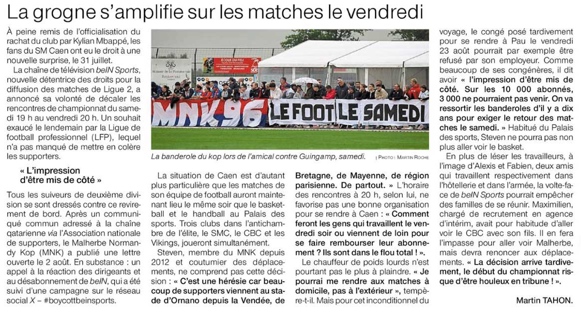 la tête des mauvais jours dans l'Equipe avec la banderole à Vire