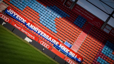 Pour le match à domicile d'aujourd'hui contre la réserves du FC Bayern, le stade brille avec le lettrage de nos amis français du MNK ' 96 célébrant les 25 ans de leur groupe. Joyeux anniversaire, MNK ' 96 !