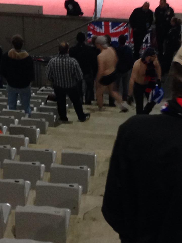 C'est repartit pour la derniere etape de l'aller ou on arrive sur Nancy, on continue a faire et dire de la merde jusqu'a ce qu'on trouve le parking visiteurs, on retrouve Morgan, Manto chope nos invits, fouille legere, on bache et c'est parti pour le match. On se met torse nu, on est peu mais on chante et puis on se prend rapidement un but. On tape de bons delires dans le parcage en exploitant la totalite de la surface de la tribune qui nous est reservee, perso pas tout suivi de ce qui se passait sur le terrain entre courir apres Griot et Morgan qui vole l'etendart jeunes, parler aux stadiers de notre tribune qui sont plutot cools, regarder Manto qui tombe amoureux et qui cherche son pantalon... Cote locaux ca a l'air correcte mais j'ai pas trop fait attention. La fin du match arrive, on sent qu'on va perdre donc on monte dans la tribune dans le but de faire une simulation de but, on arrive meme pas en haut que Duhamel sauve le match a la 89eme, euphorie chez nous, grosse descente, Morgan veut faire de l'escalade. Fin du match on debache tranquillement, trop tranquillement pour les stadiers qui sont la qu'on pas que ca a faire, du coup on part en reflexion sur ce qu'ils ont d'autre a faire avec Nitram alors que Manto veut vraiment recuperer ses briquets pris a la fouille. On doit sortir rapidement du parking car un flic n'a pas que ca a faire non plus et beugle "allez remontez dans vos charrettes et sortez du parking".