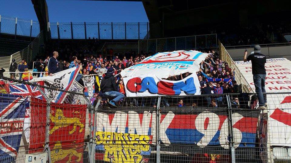 Côté Nantes, une bonne ambiance tout le match, entendu quelques fois mais ça bougeait très bien, assez impressionnant quand toute la tribune se mets à bouger à l'unisson. Petit tripe de leur côté en recommençant à plusieurs reprises leur tifo PQ, plutôt stylé.