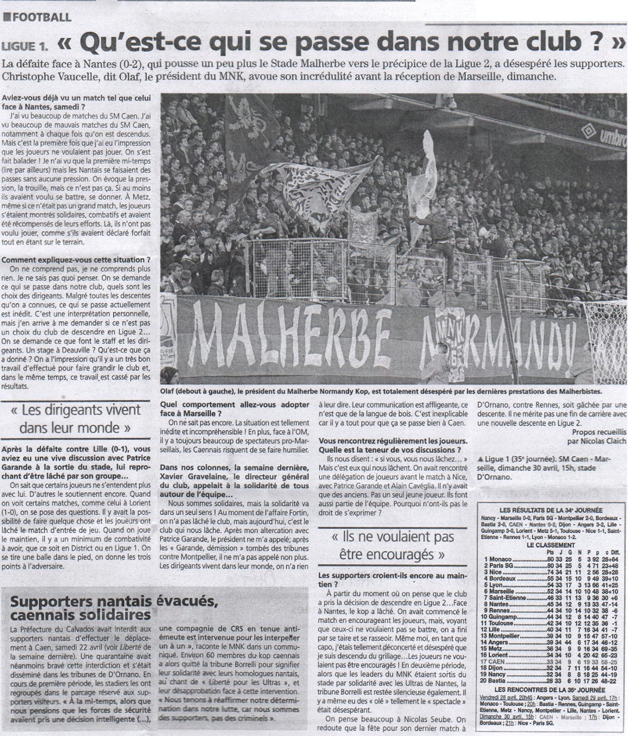 L’un des grands acteurs de cette saison. Si des membres du Kop ont accueilli les Caennais après l’exploit au Parc, avec fumigènes et chants, il n’en a pas toujours été ainsi. Souvent frustré par ce qu’il voyait sur le terrain, le Malherbe Normandy Kop a sifflé, un peu. En tête des huées, Patrice Garande, avec qui les relations se sont tendues depuis sa prise de bec avec Olaf, responsable du MNK.