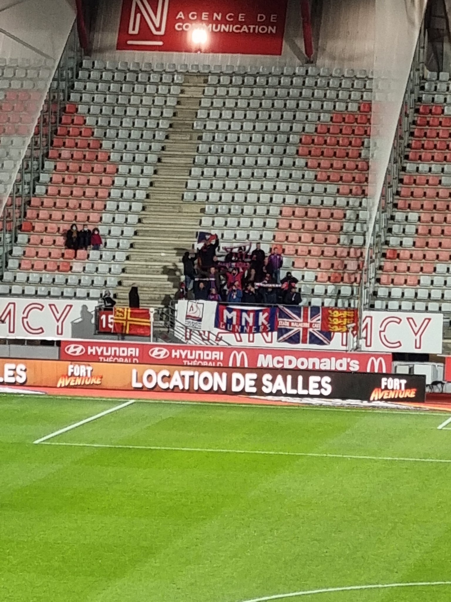 une vingtaine de personnes selon le club dont deux voitures de Génération stade Malherbe (selon l'un des leurs vendredi soir dans l'émission 100% stade Malherbe de France Bleu)