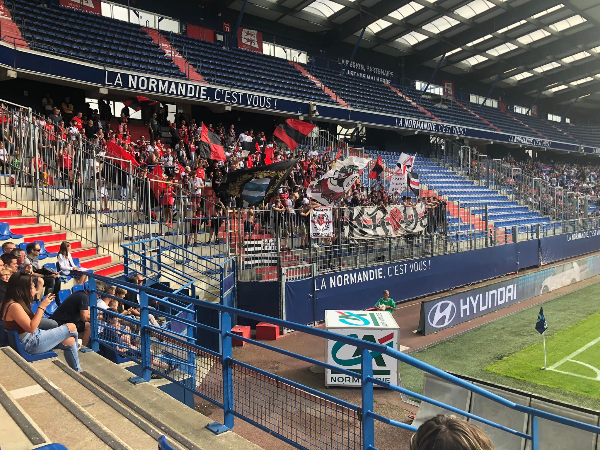 En ce samedi de novembre c'est une bonne vingtaine de Parisiens qui prennent la route en direction de la Normandie, plus précisément de Caen. Le départ est donné aux alentours de 14h30. Après ce trajet bien arrosé 🍺, nous arrivons en tribune juste avant le coup d’envoi, où nous retrouvons différents supporters de notre club. Nous mettons une tres bonne ambiance en parcage par rapport au nombre et notre équipe nous le rend bien en inscrivant l'unique but de la rencontre, ce qui nous vaut donc une belle victoire.