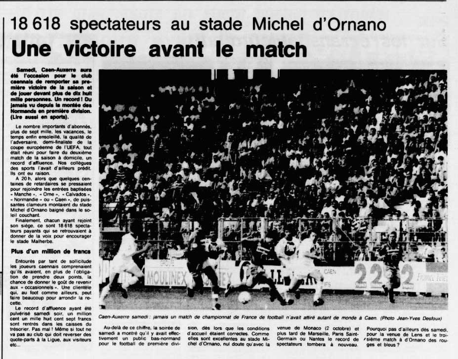 Ouest-France 26 septembre 1991 Le déficit du club illustré par une célèbre photo