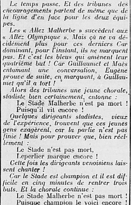Mais non, mais non, le Stade Malherbe n'est pas mort ! déjà chanté lors du derby contre l'Olympique caennais le 11 décembre 1927