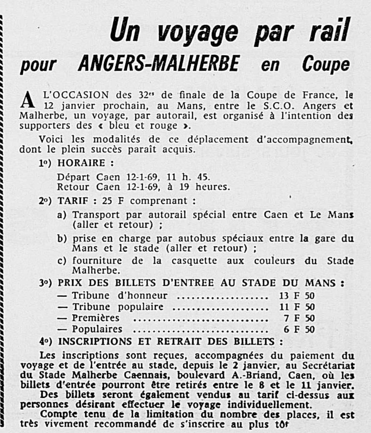 les déplacements en Coupe de France (janvier 1969)