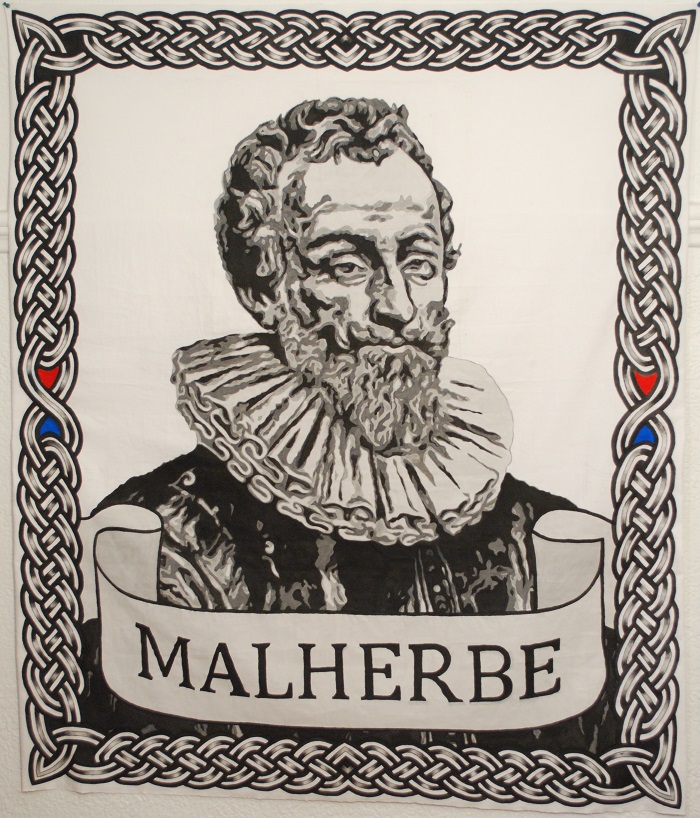 Etendard François de Malherbe, 150X120 cm, peinture acrylique pour enfants sur tissu.