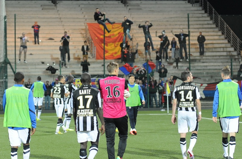 Fin du match les joueurs viennent nous saluer plus ou moins près du parcage.